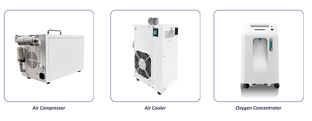 - Oxygen Delivery: Supplies 93% oxygen under pressure via an oxygen headset or mask.